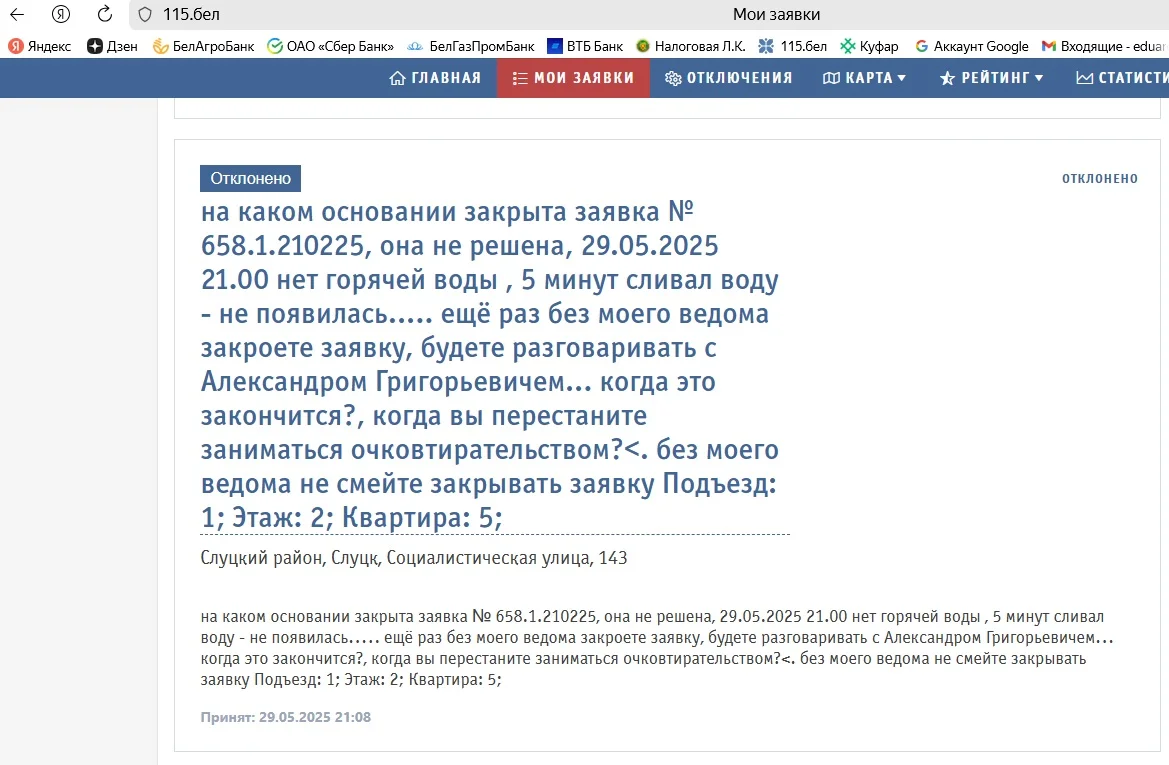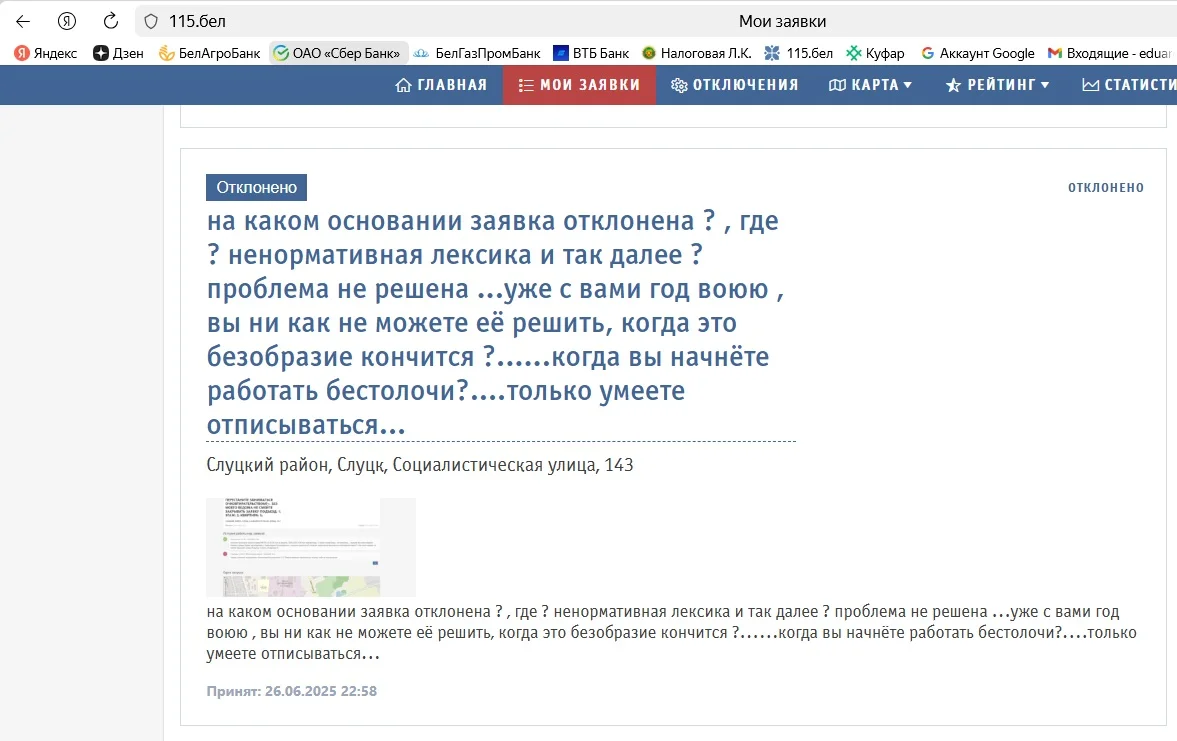 На 115 постоянно подаю жалобу, её постоянно отклоняют, мучаюсь почти тир года, результат нулевой... им легче отклонить заявку, чем выполнить