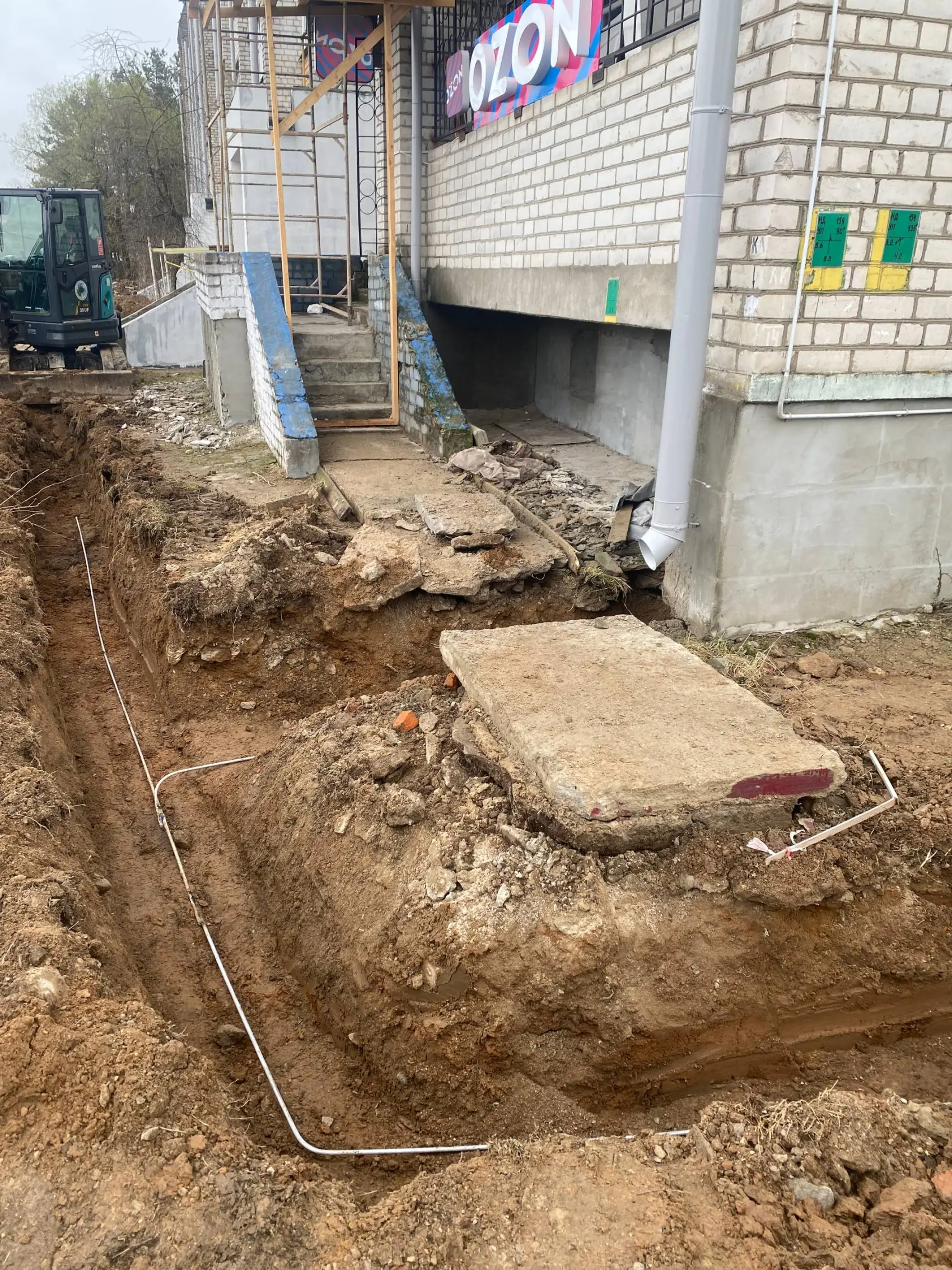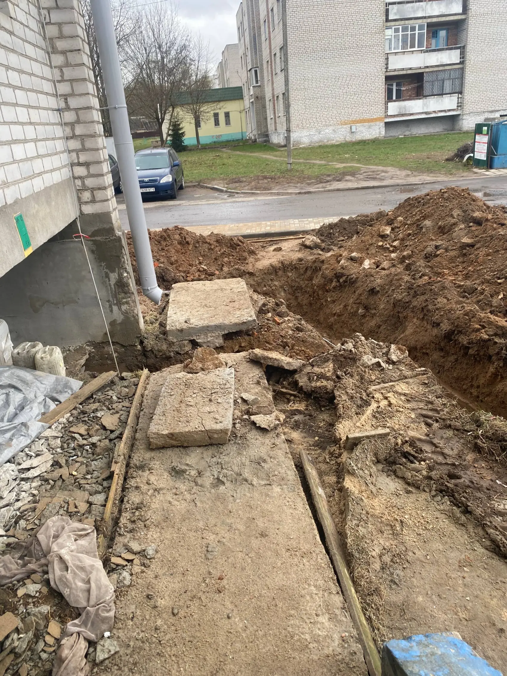 Во время капремонта раскопали такую вот траншею, причём зацепили оба входа в ПВЗ, так бы люди могли хоть со второго заходить, но теперь вообще нет возможности. Ладно, если бы соорудили что-то вроде временного мостика, но нет. Рабочий день окончен, все пошли по домам, а путь по-прежнему отсутствует. Спасибо огромное за совестливую работу.